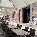 The rooms include climate control, along with such modern comforts as a flat-screen TV with satellite channels. Bathrooms are fitted with a bidet and a separate toilet as well as a hair dryer and toiletries.